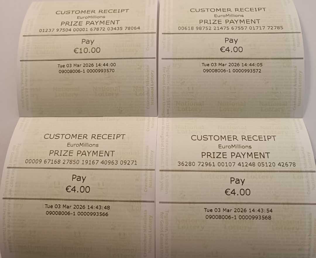 For wins over €10,000, we will have to meet at the National Lottery Claims Department.
