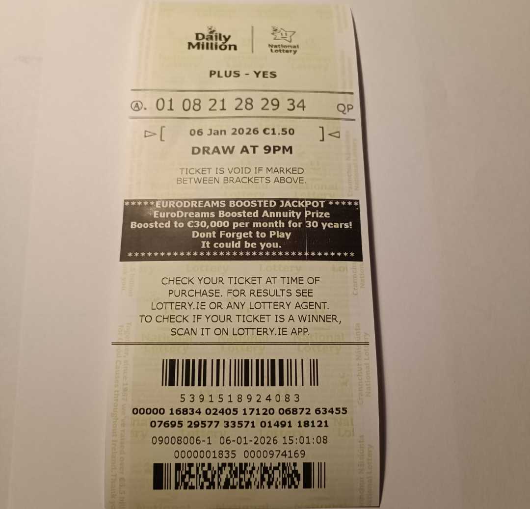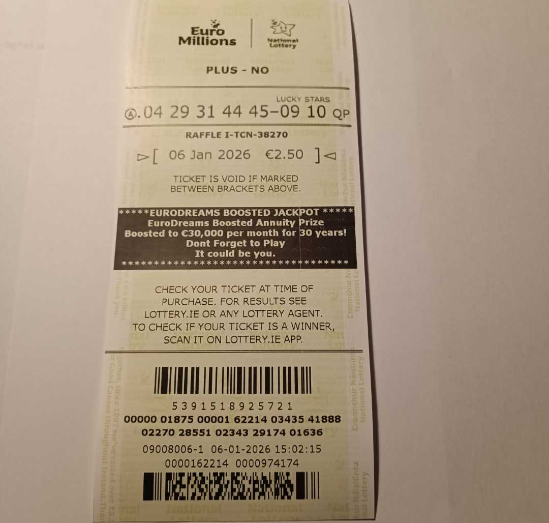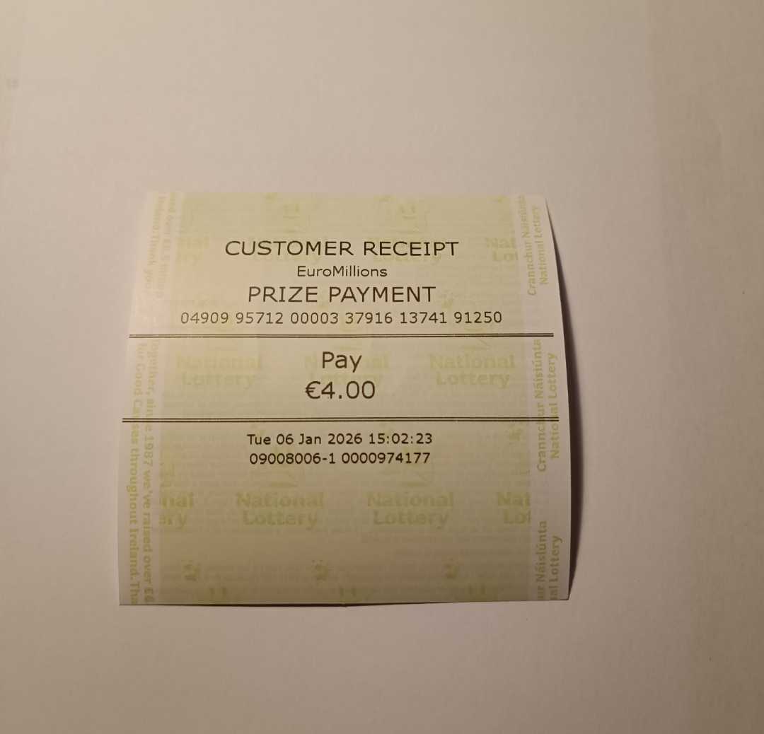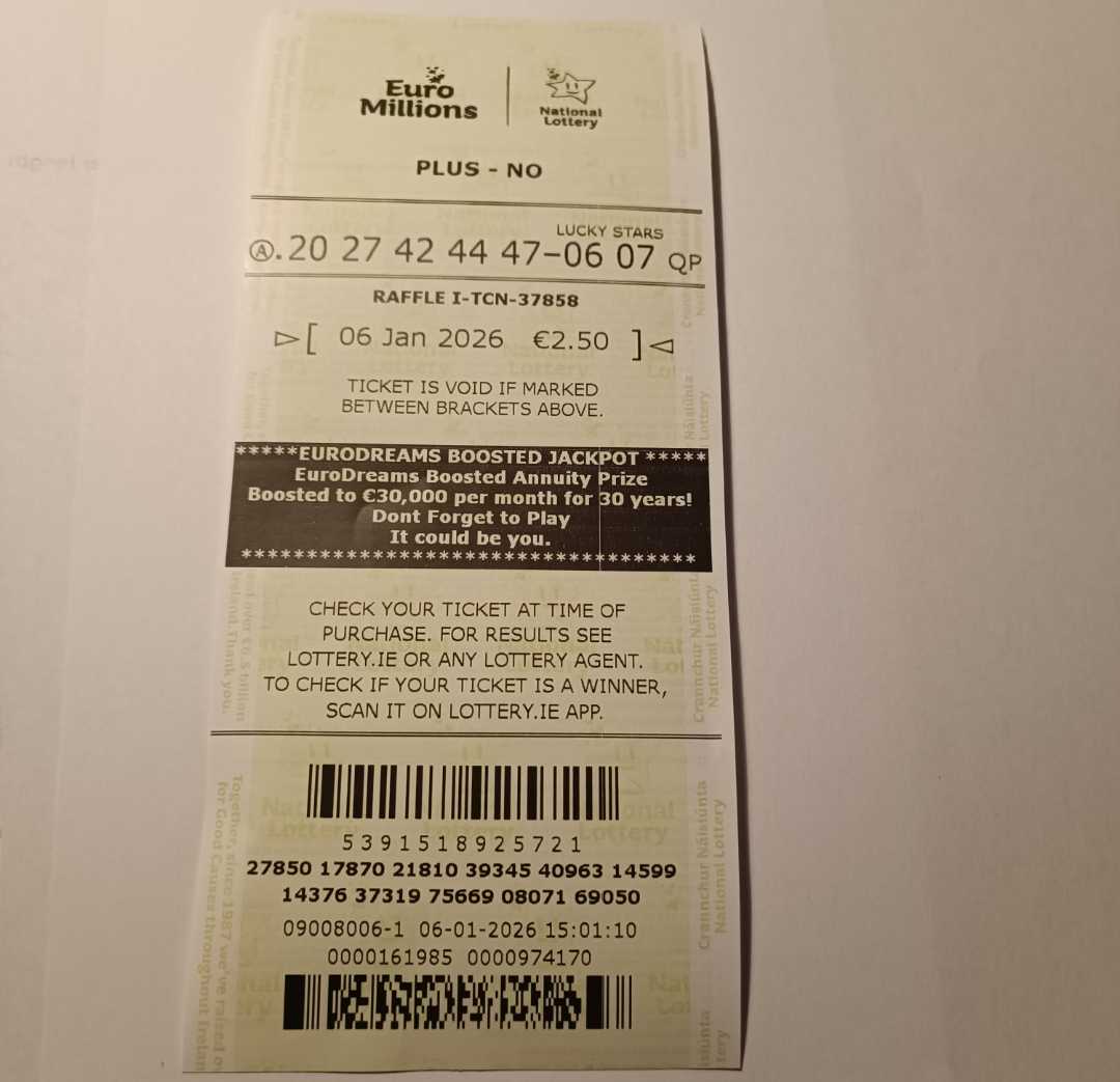 We play Euromillions every Tuesday. Please send me the money before Thursday as I need time to physically send the tickets to the shop. If you haven’t paid, you don’t play.