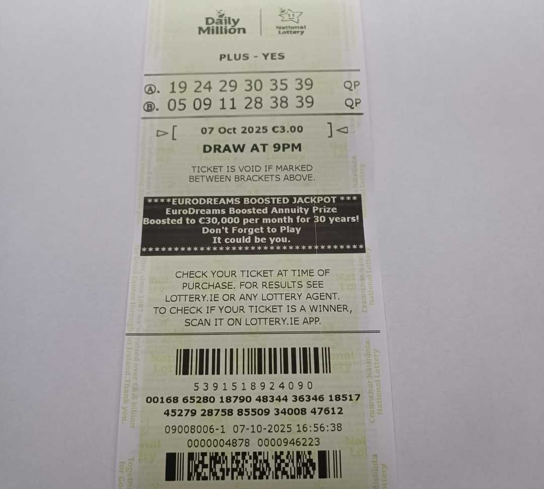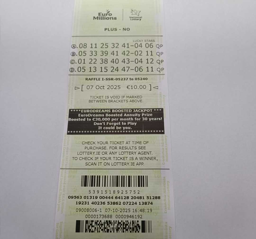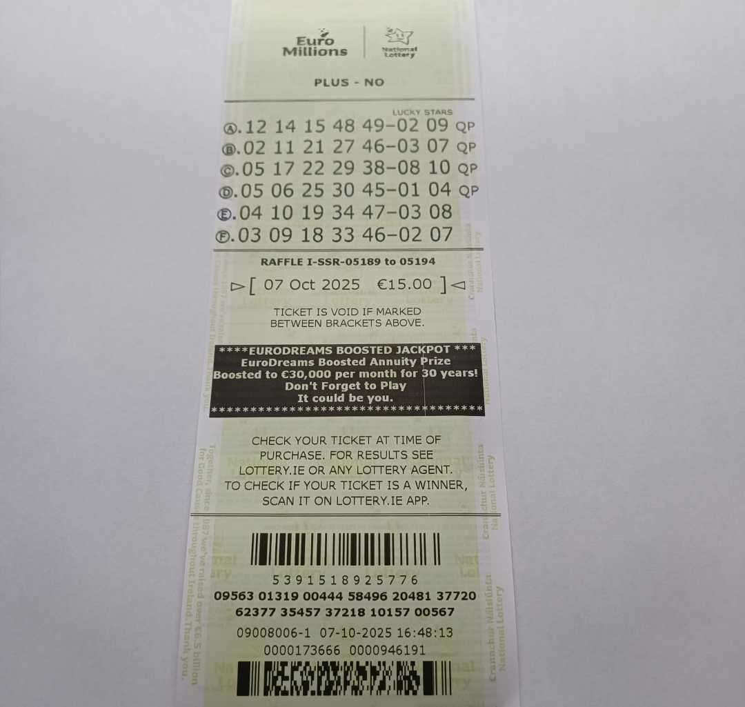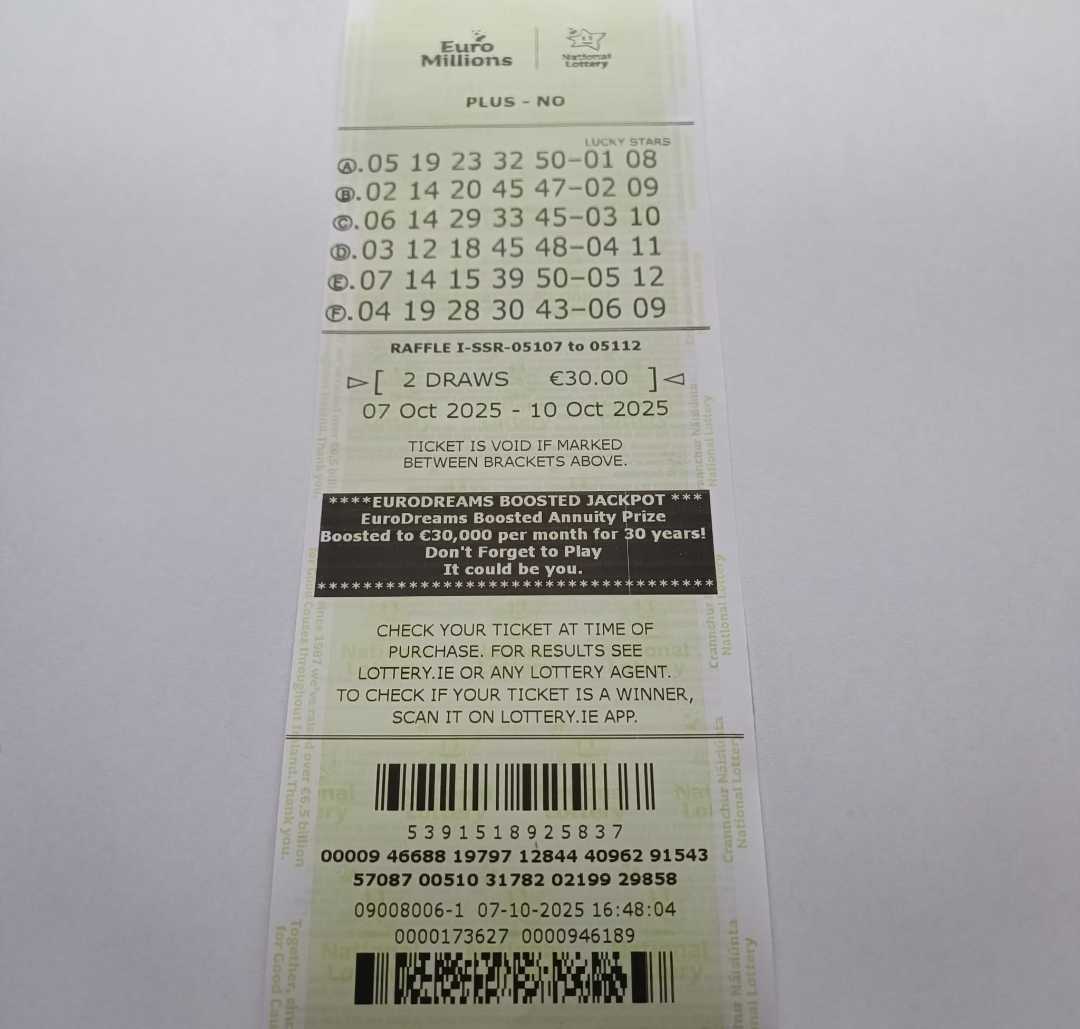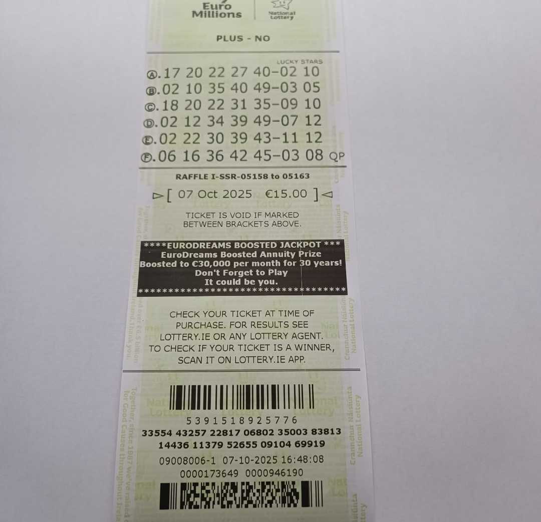 We play Euromillions every Tuesday. Please send me the money before Thursday as I need time to physically send the tickets to the shop. If you haven’t paid, you don’t play.