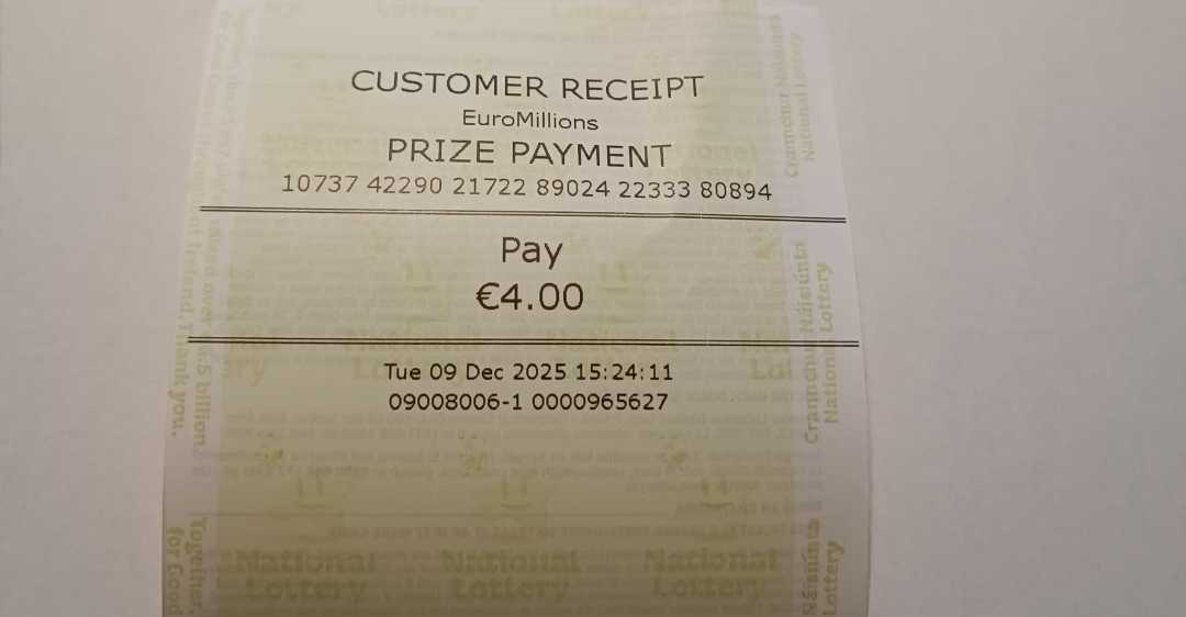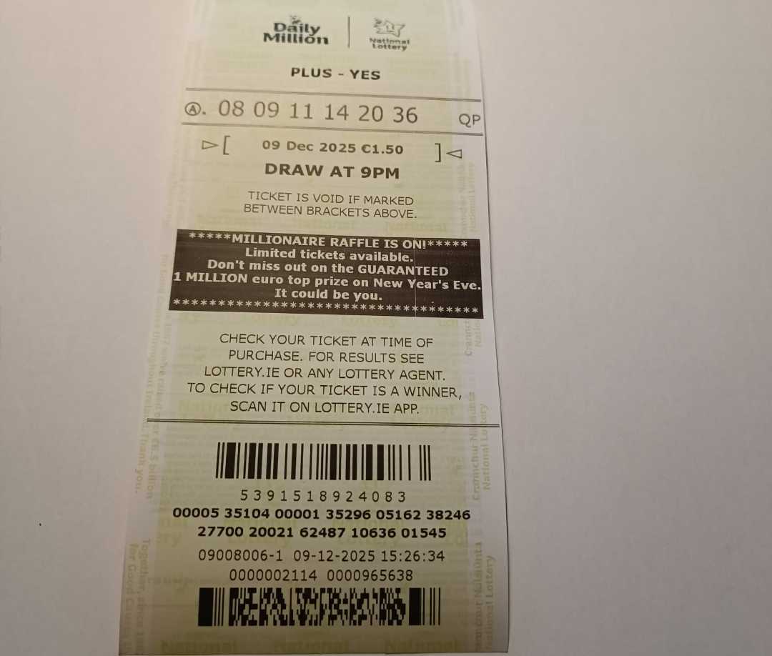 For wins over €10,000, we will have to meet at the National Lottery Claims Department.