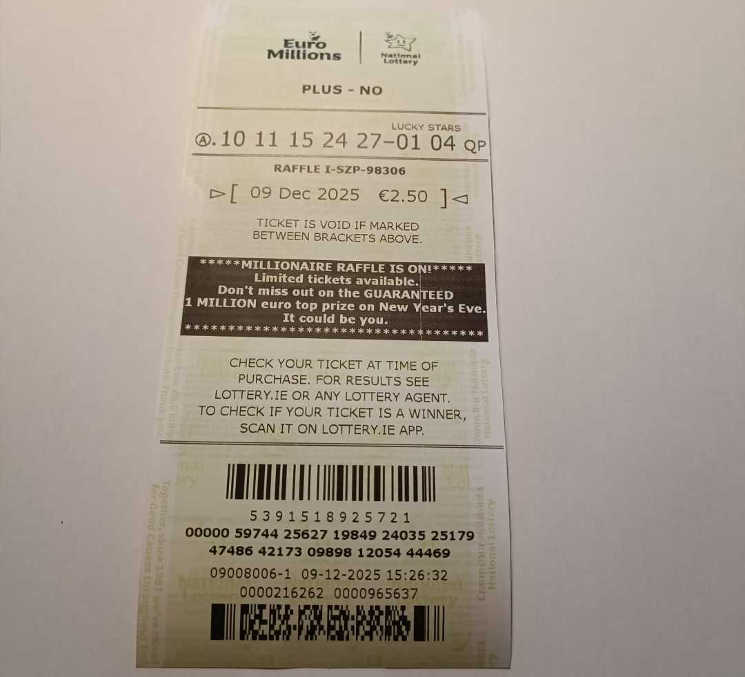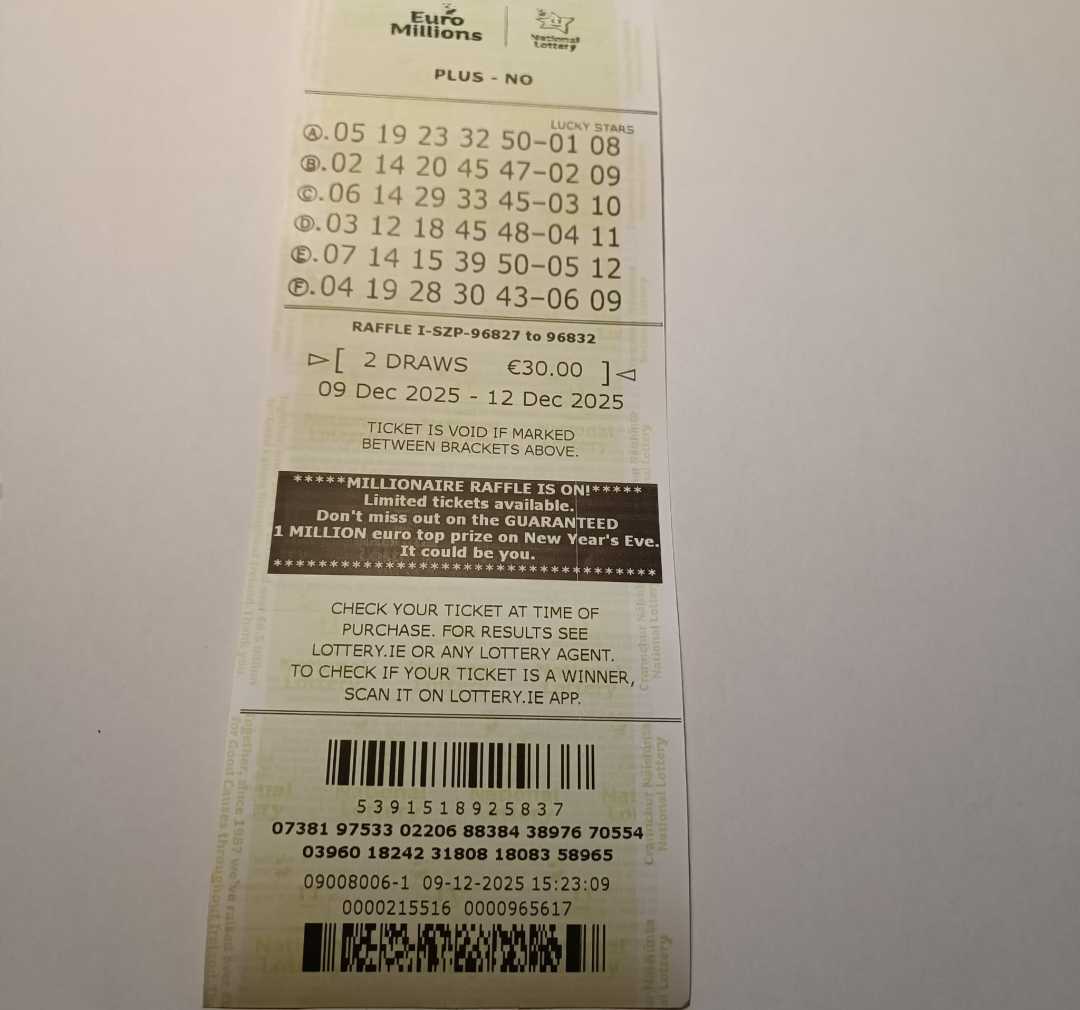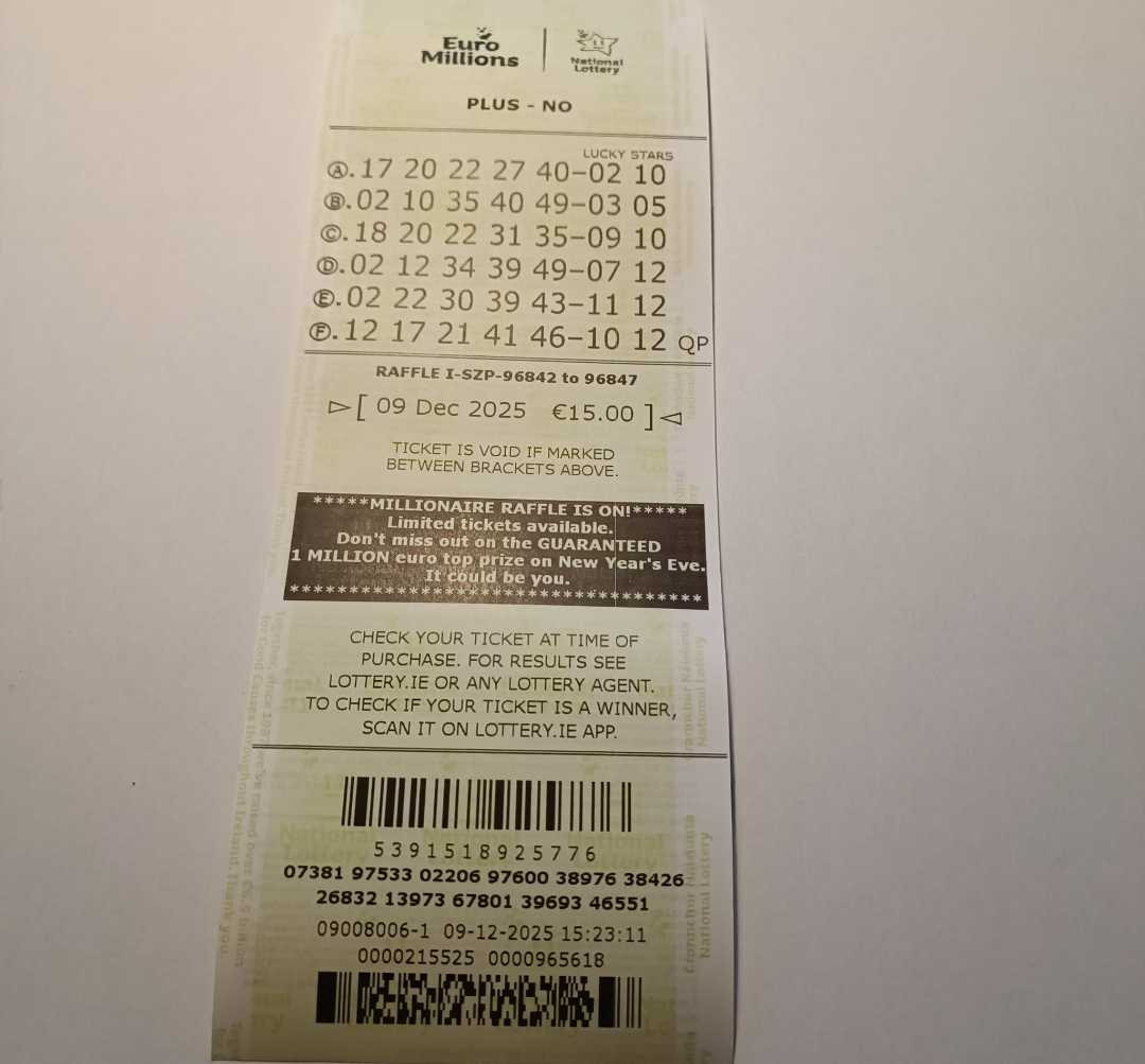 We play Euromillions every Tuesday. Please send me the money before Thursday as I need time to physically send the tickets to the shop. If you haven’t paid, you don’t play.
