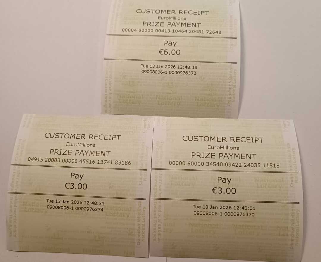 For wins over €10,000, we will have to meet at the National Lottery Claims Department.
