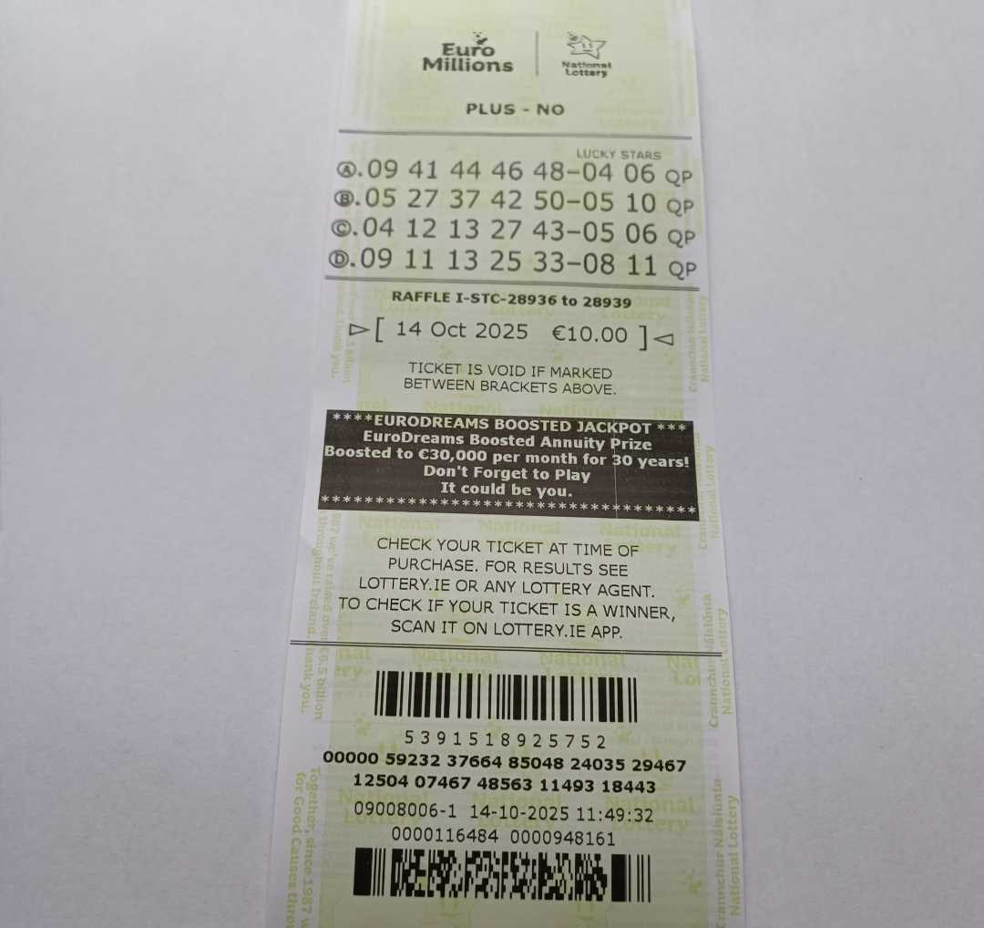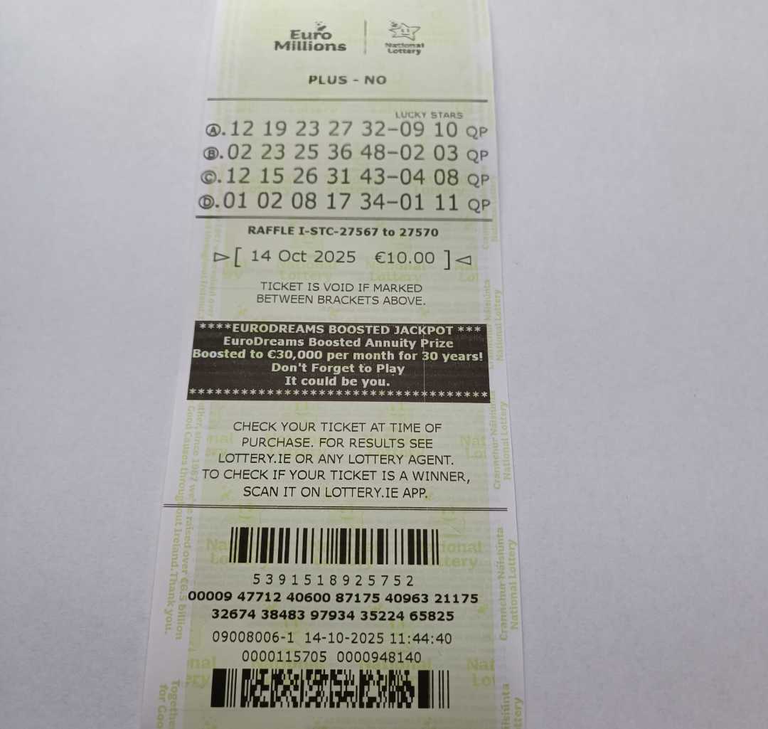 For wins over €10,000, we will have to meet at the National Lottery Claims Department.