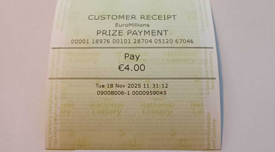 For wins over €10,000, we will have to meet at the National Lottery Claims Department.