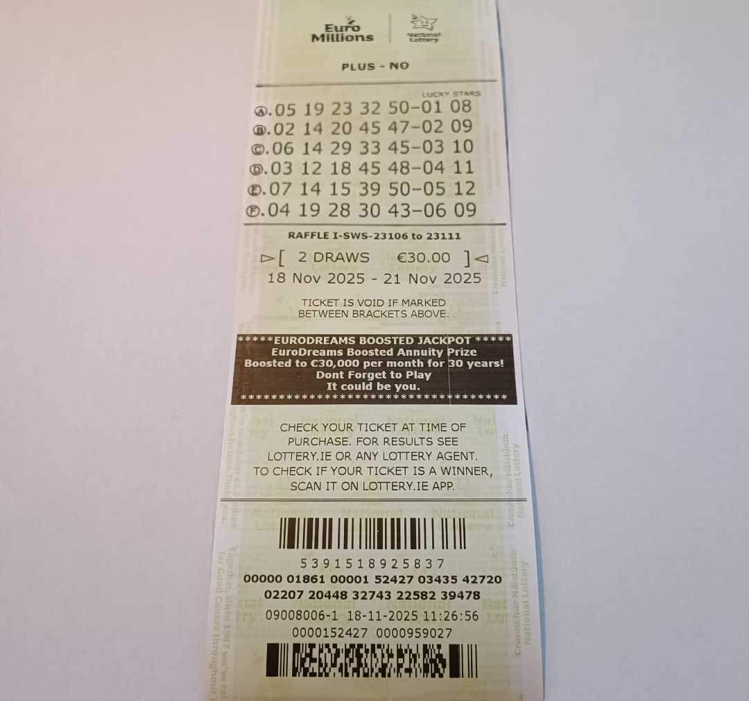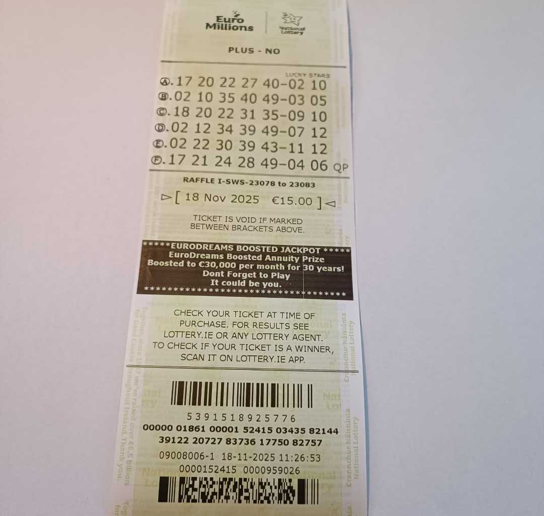 If the win is below €500, I will buy more tickets for your syndicate for future draws.