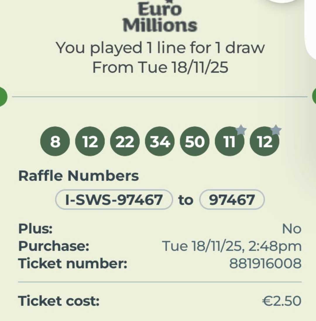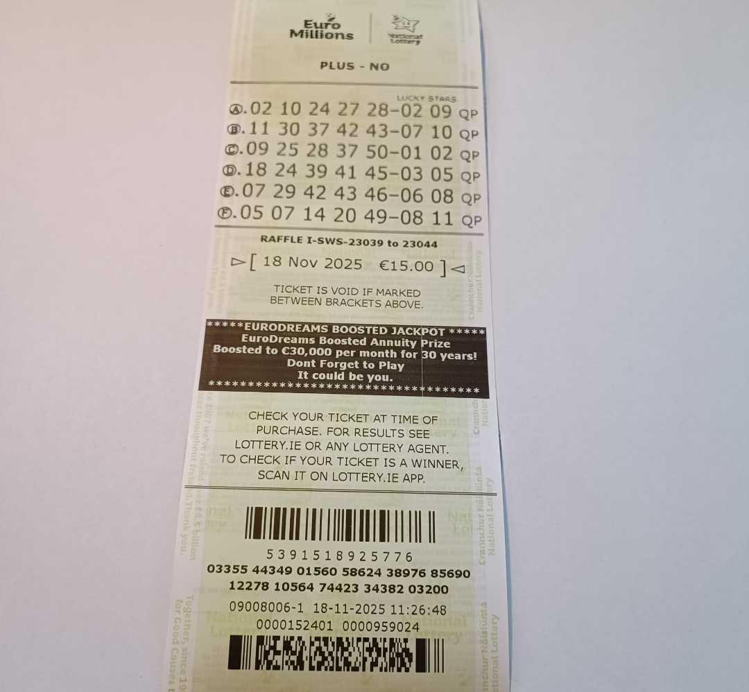 We play Euromillions every Tuesday. Please send me the money before Thursday as I need time to physically send the tickets to the shop. If you haven’t paid, you don’t play.