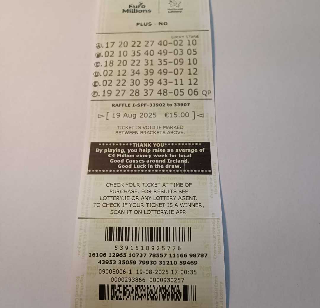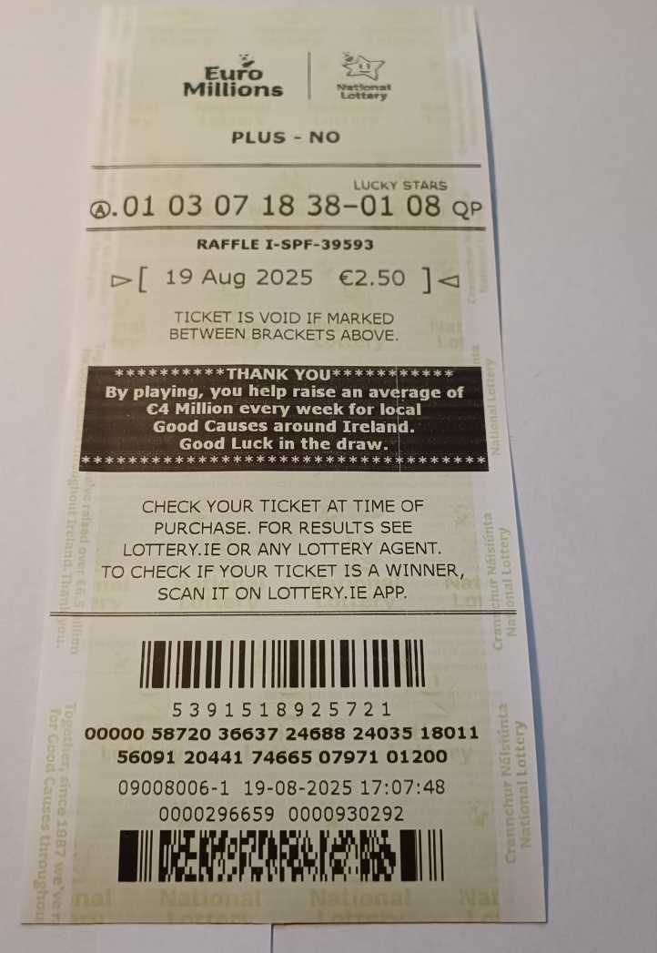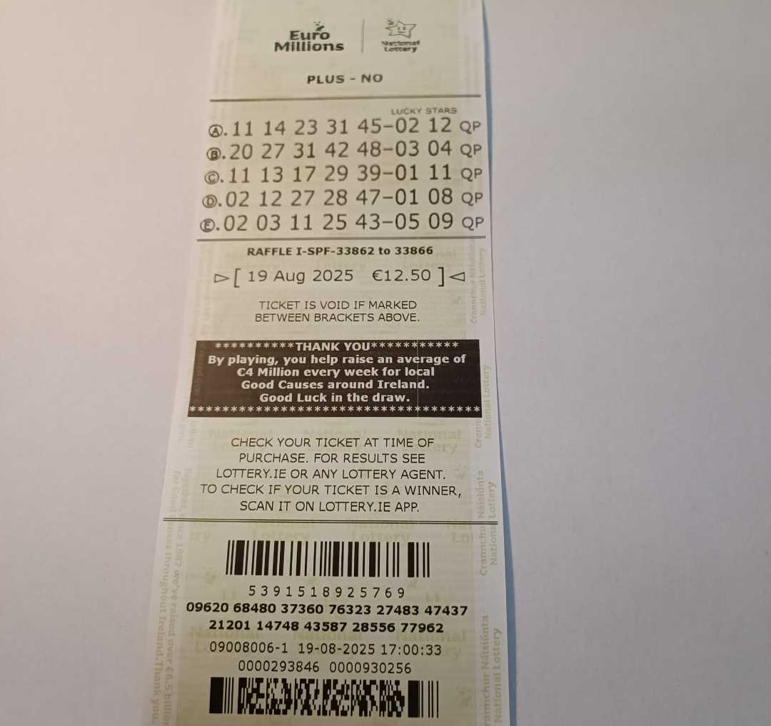 We play Euromillions every Tuesday. Please send me the money before Thursday as I need time to physically send the tickets to the shop. If you haven’t paid, you don’t play.