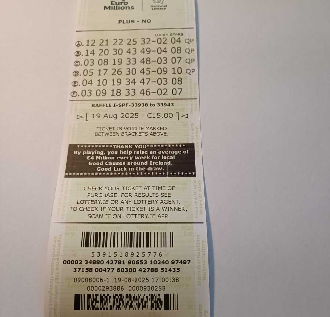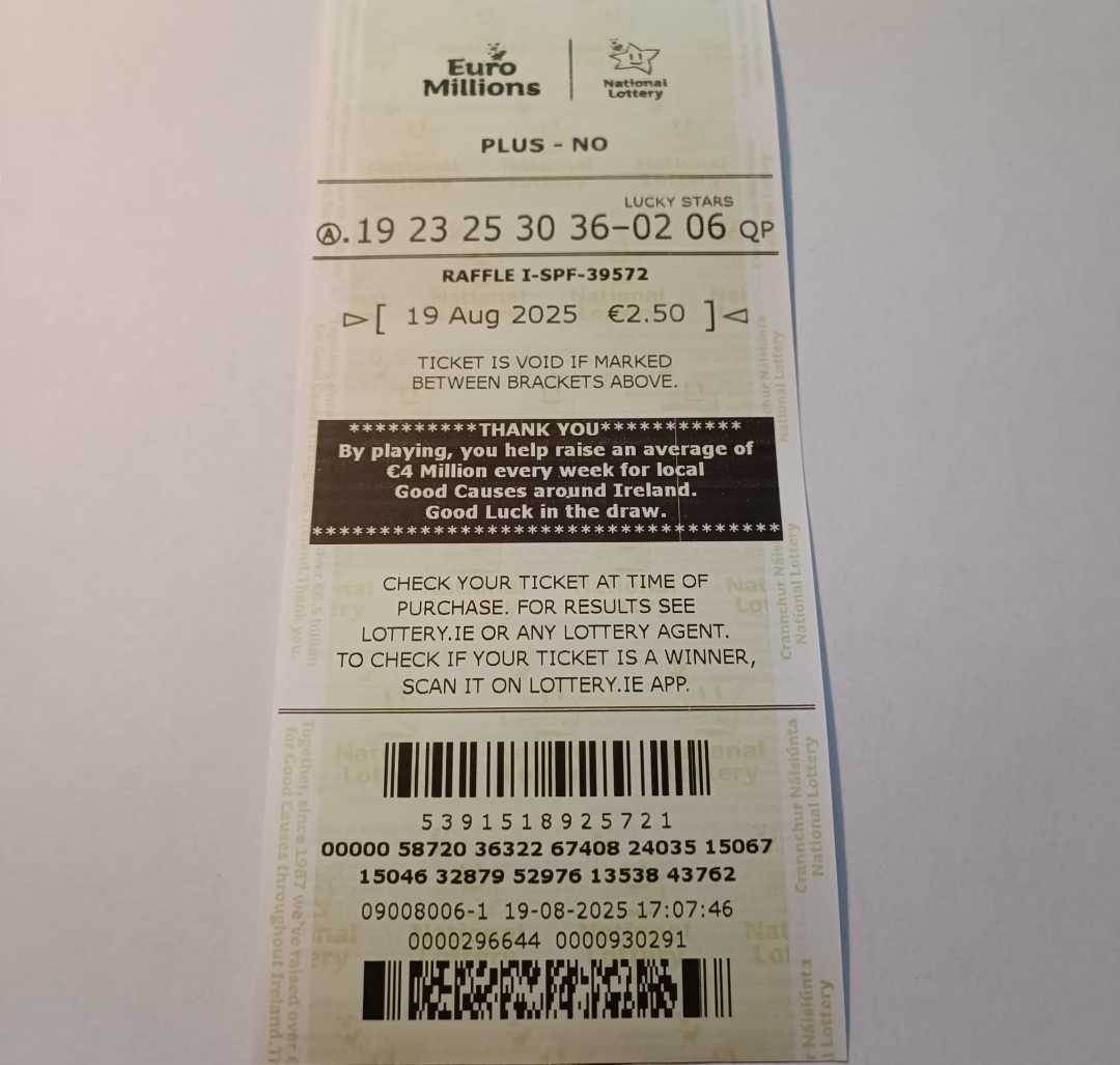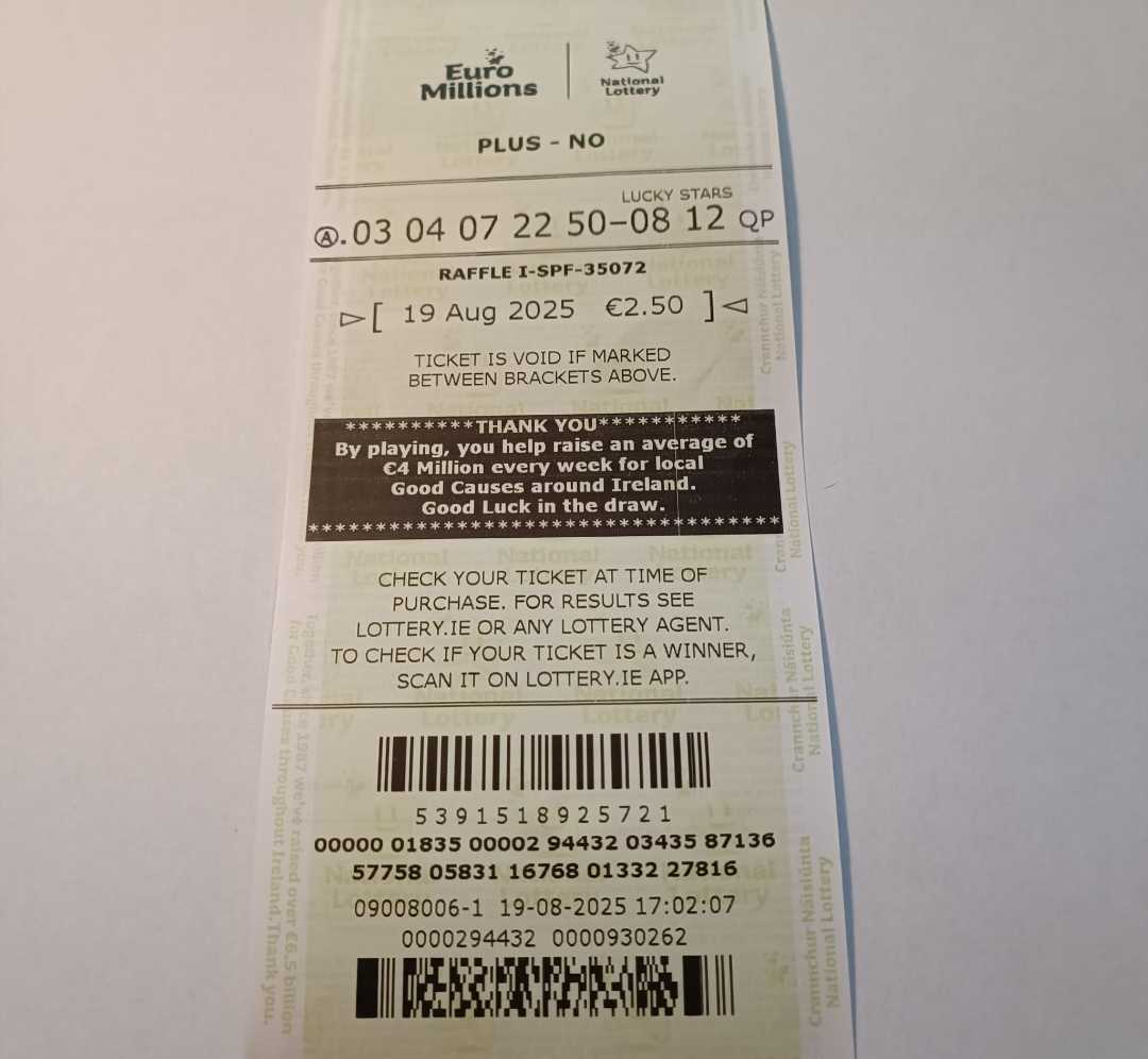 We play Euromillions every Tuesday. Please send me the money before Thursday as I need time to physically send the tickets to the shop. If you haven’t paid, you don’t play.