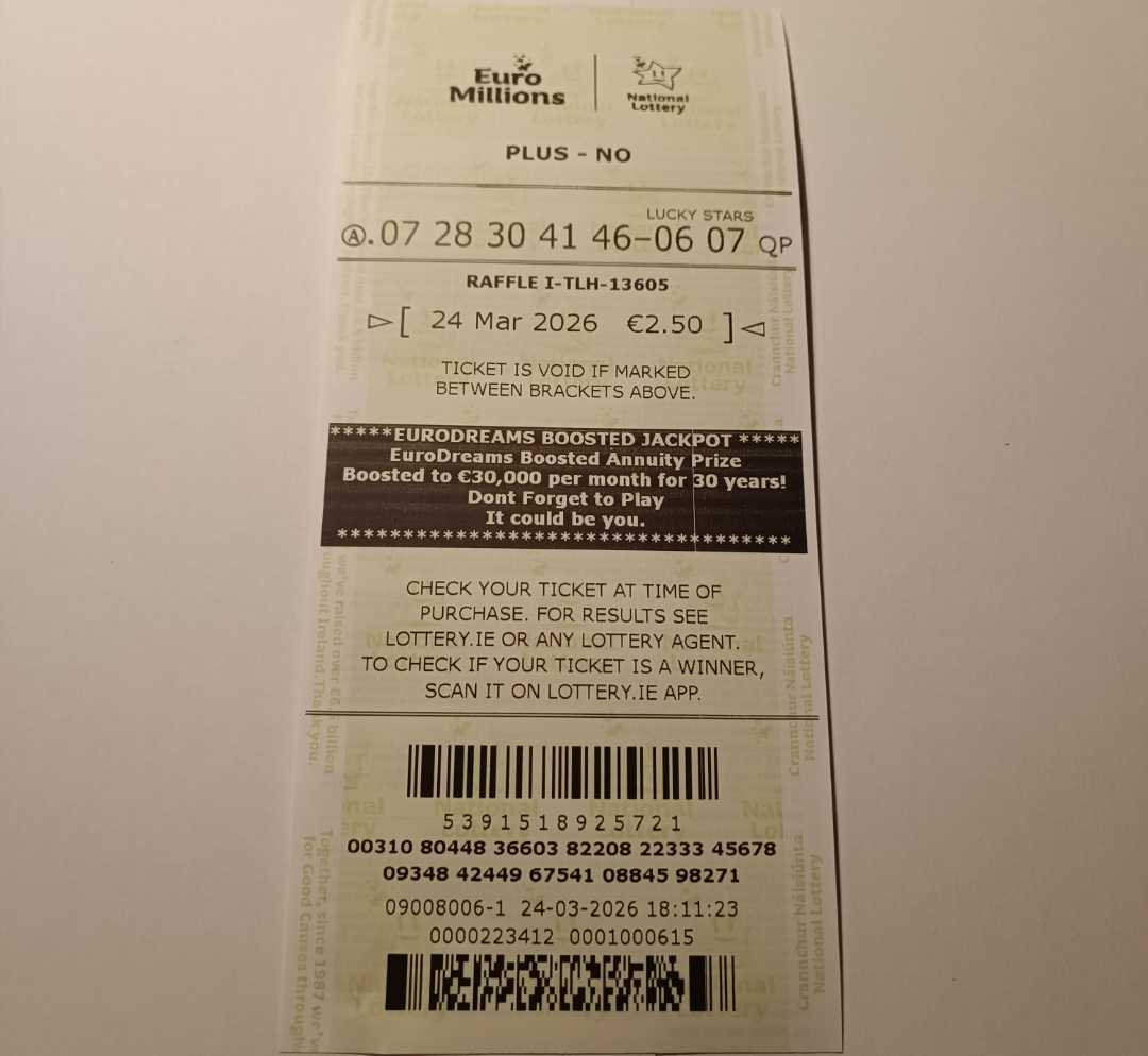 We play Euromillions every Tuesday. Please send me the money before Thursday as I need time to physically send the tickets to the shop. If you haven’t paid, you don’t play.