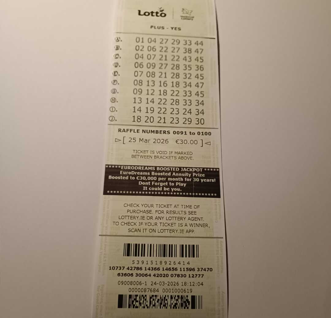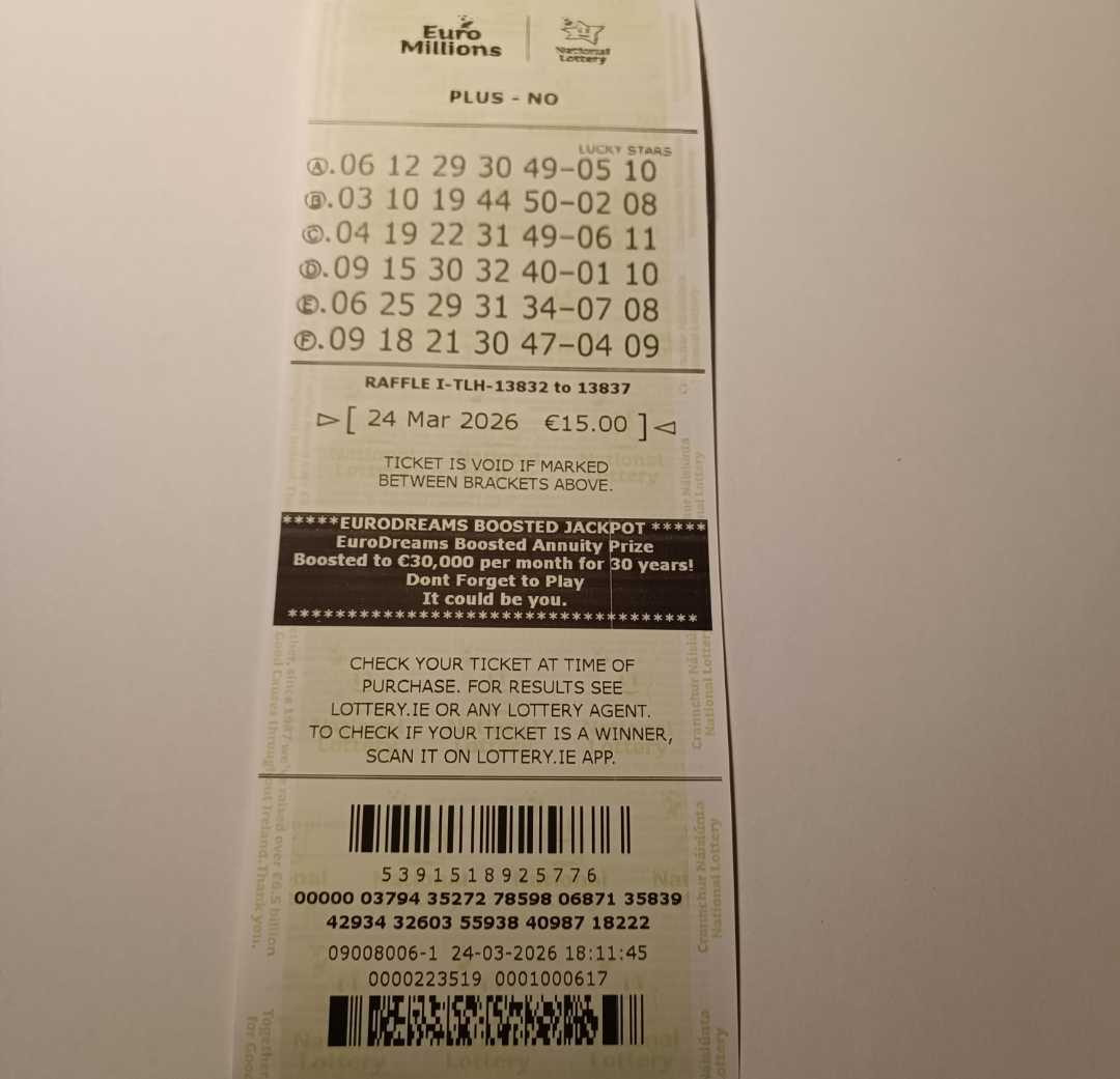 If the win is below €500, I will buy more tickets for your syndicate for future draws.