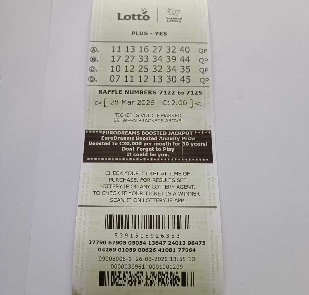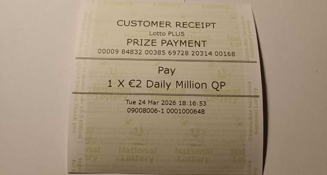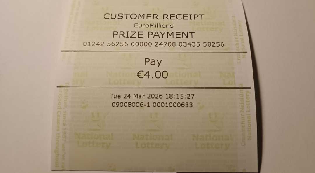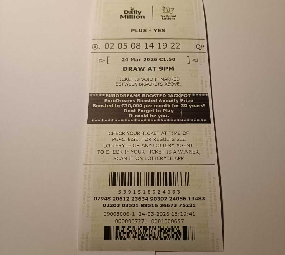 For wins over €10,000, we will have to meet at the National Lottery Claims Department.