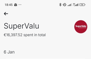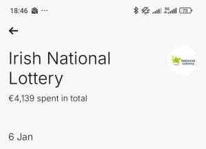 Next screenshot shows nearly €4,000 spent through the National Lottery app—the platform where it all began. Occasionally, if someone pays too late and I don’t have time to go to SuperValu, I don’t exclude them. Instead, I cover their share by purchasing an additional ticket via the app. It’s all about keeping things fair and flexible for everyone involved.